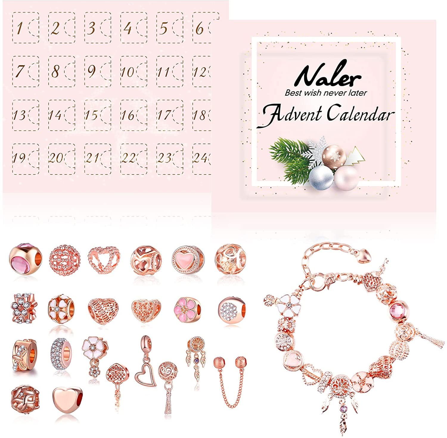 Naler Advent Calendar 2023,Rose Gold Christmas Advent Jewelry Kit