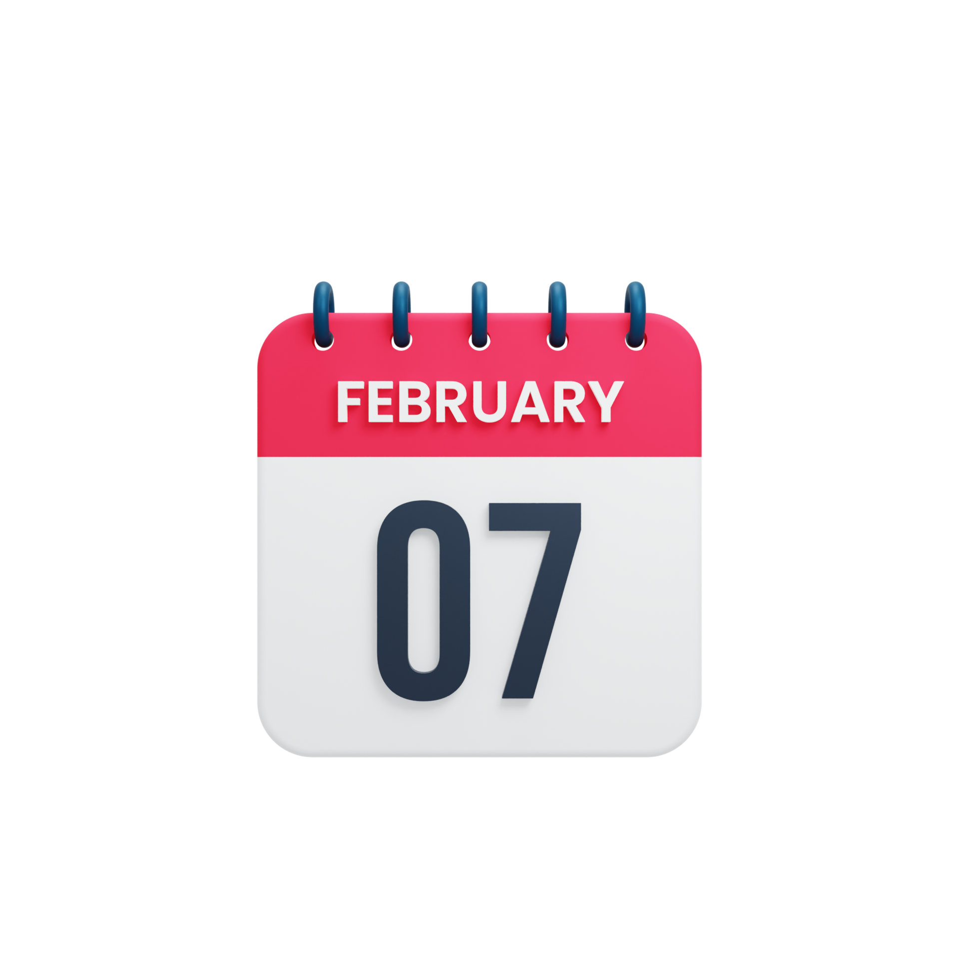 February Realistic Calendar Icon 3D Illustration Date February 07