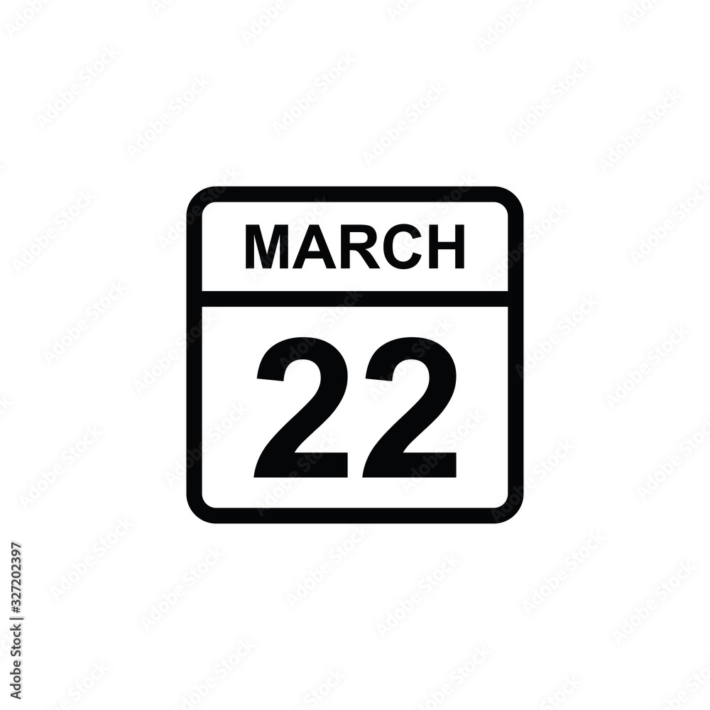 22nd March calendar icon. March 22 calendar Date Month icon vector